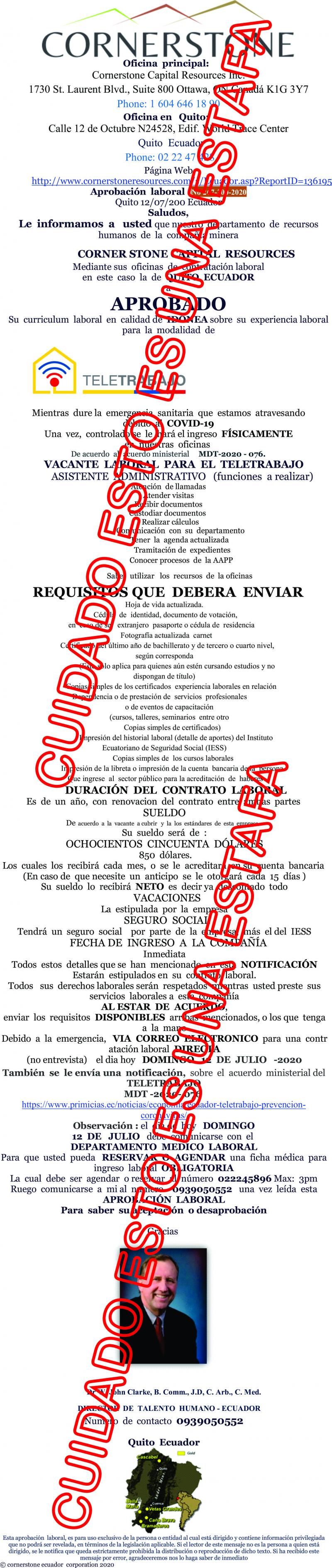 Frente a varias denuncias recibidas en nuestra empresa por el cobro de dinero para la contratación de trabajadores por parte de personas inescrupulosas que utilizan el nombre de Cornerstone Capital Resources.